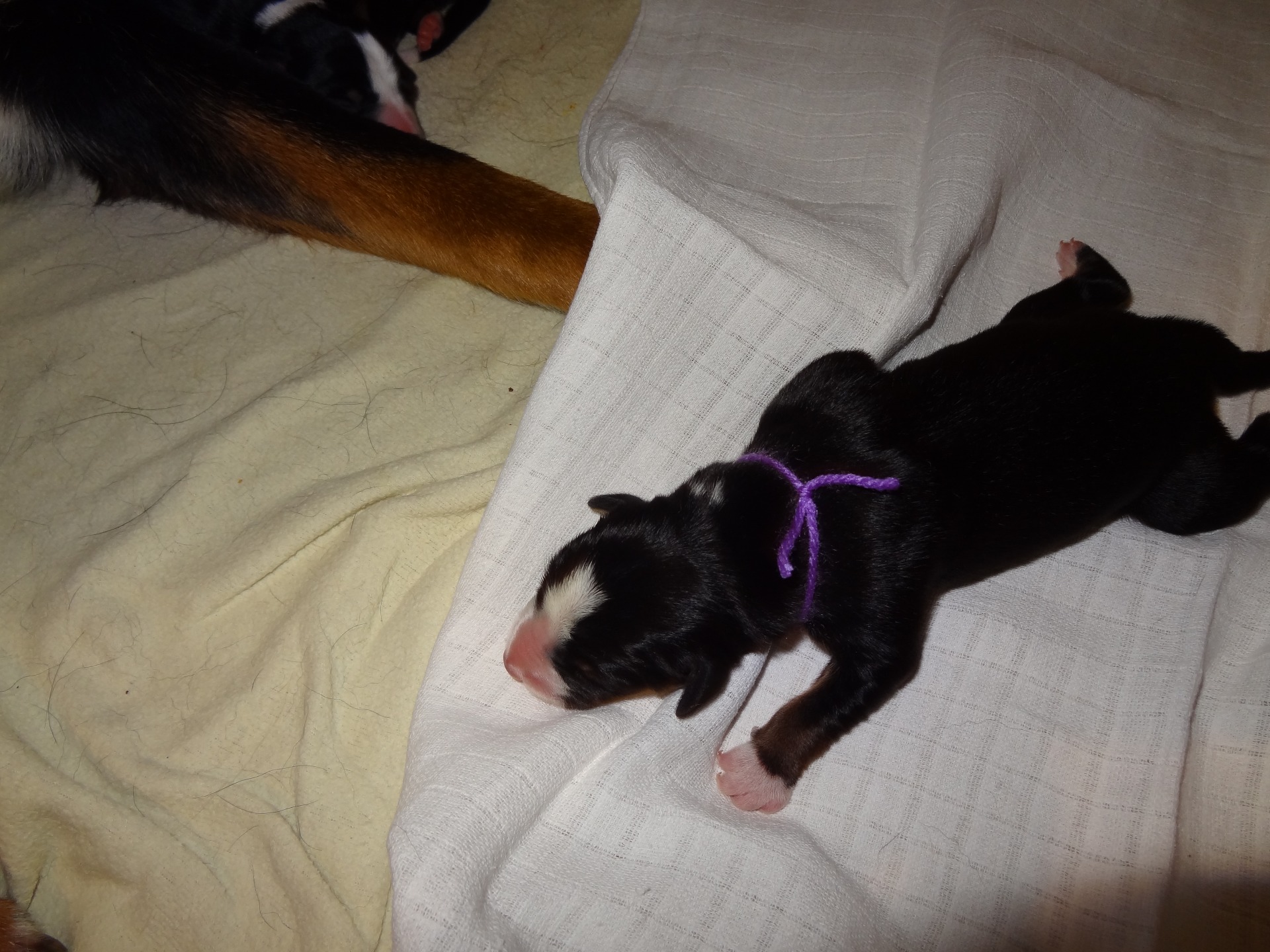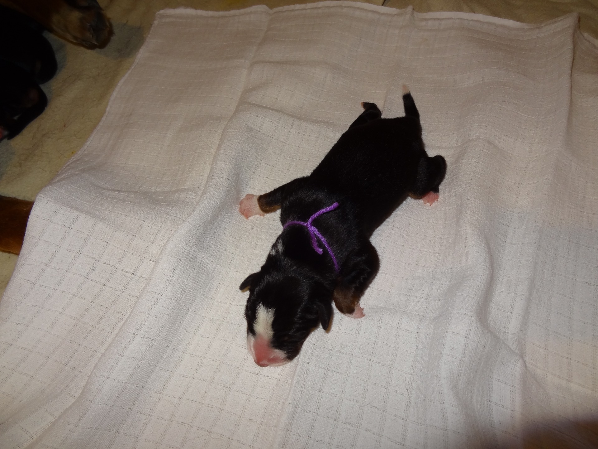 Cynthia je největší fenka (i štěně) z vrhu. Na svět se dostala 23.4.2018 v 9:15hod. U pana veterináře vážila 415g. Zatím většinu času prospí.