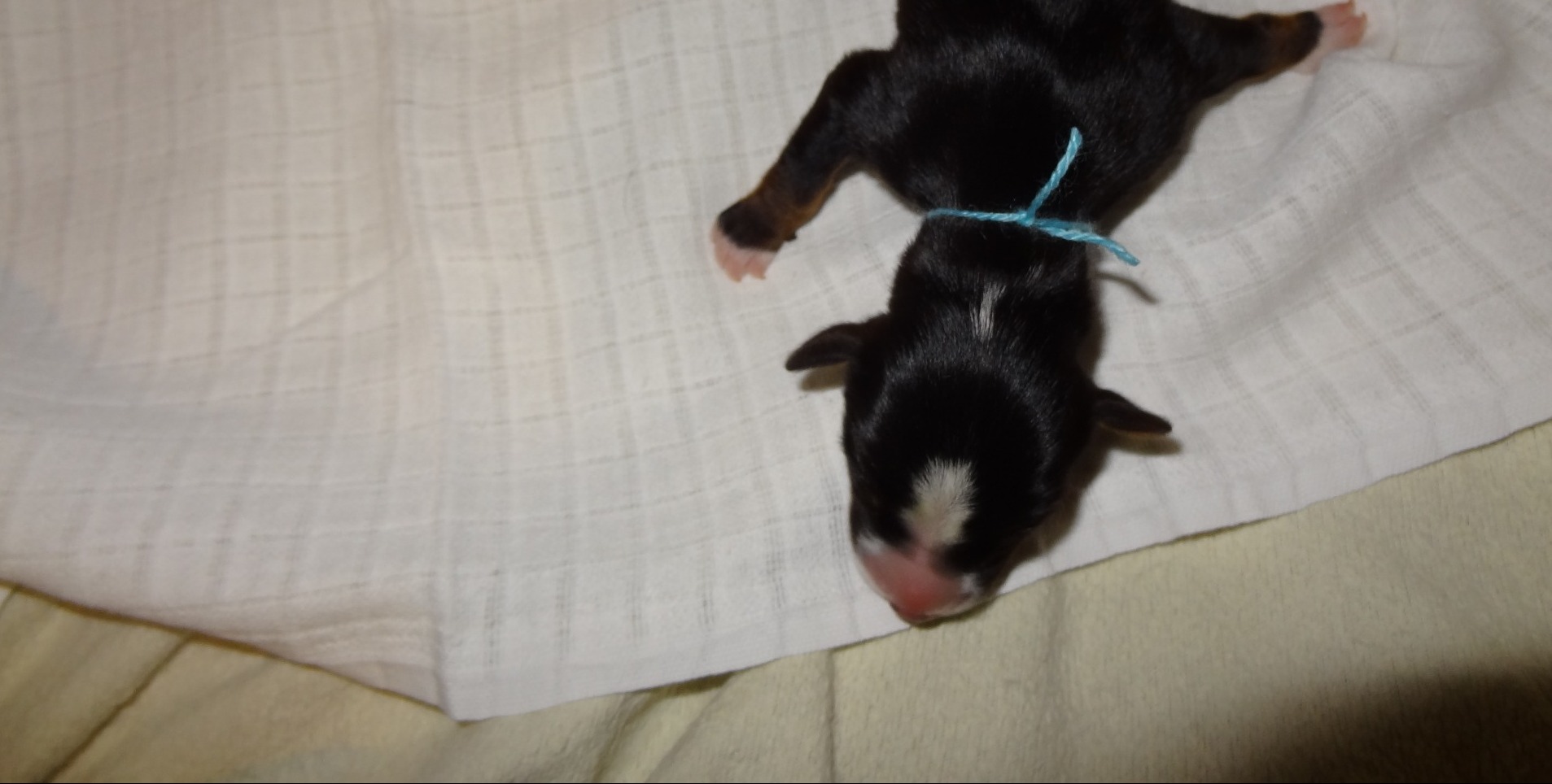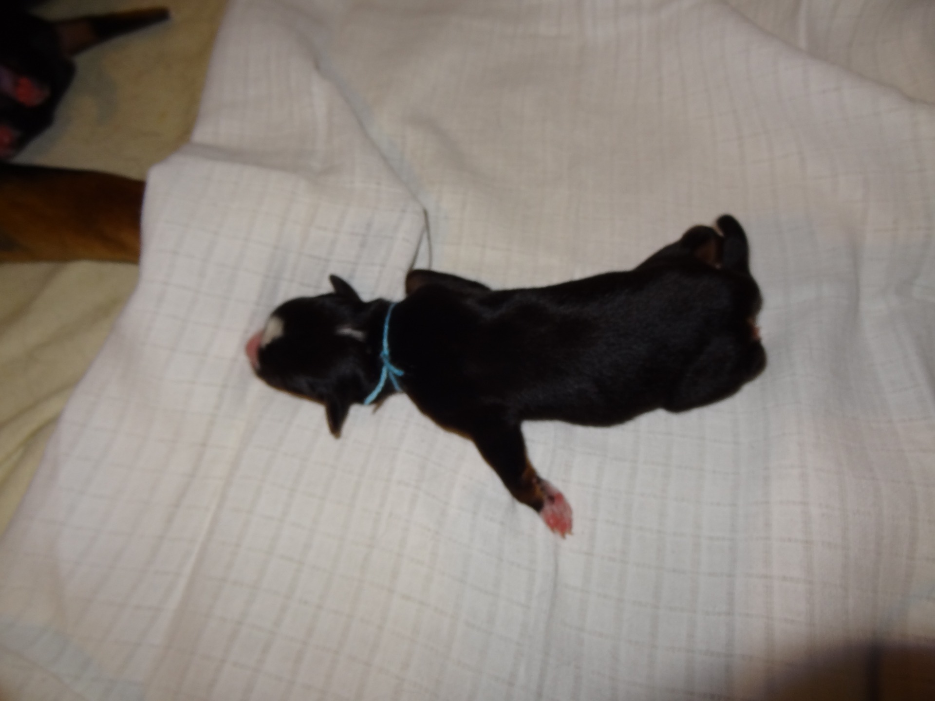 Colombo je naopak nejmenší z vrhu jeho váha u pana veterináře byla 300 g. Dostal se na svět 23.4.2018 v 9:25.