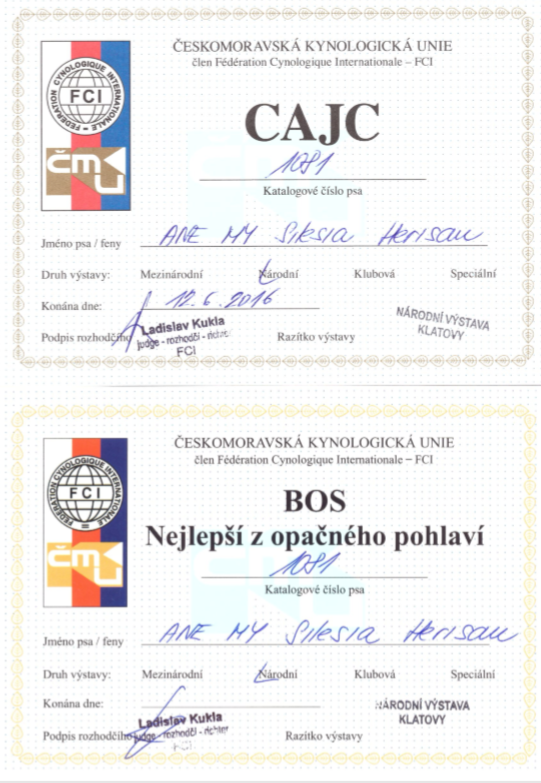 Tato národní výstava se konala v Klatovech. Naše Ane My zde dosáhla docela slušných výsledků a to ocenění CAJC, BOS a BOJ.